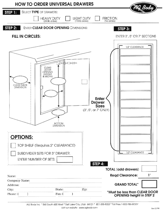 Universal Drawer Ordering Guide